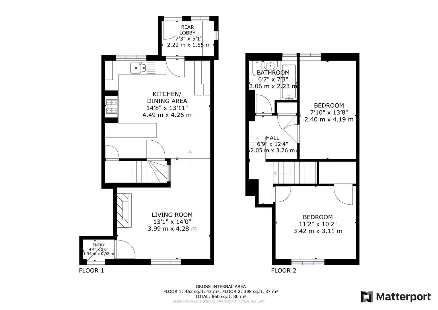 Number and types of room: 2 bedrooms, 1 bathroom, 1 reception