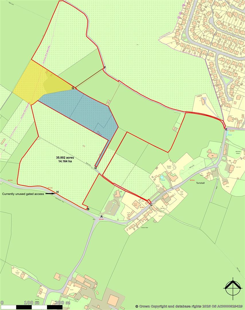 Part of the land benefits from a right of way between points “E” and “F” on the plan and is also subject to rights of access between points “E”, “F” and “G” on the plan in favour of a third party owning the land shaded yellow. At access point “C” on the plan, rights of way are reserved in favour of some adjoining properties which include The Cottage, The Old School and Tunstall Stables. At access point “C” on the plan there is a right of way between points “C” and “D” on the plan in favour of a third party owning the land tinted blue.
